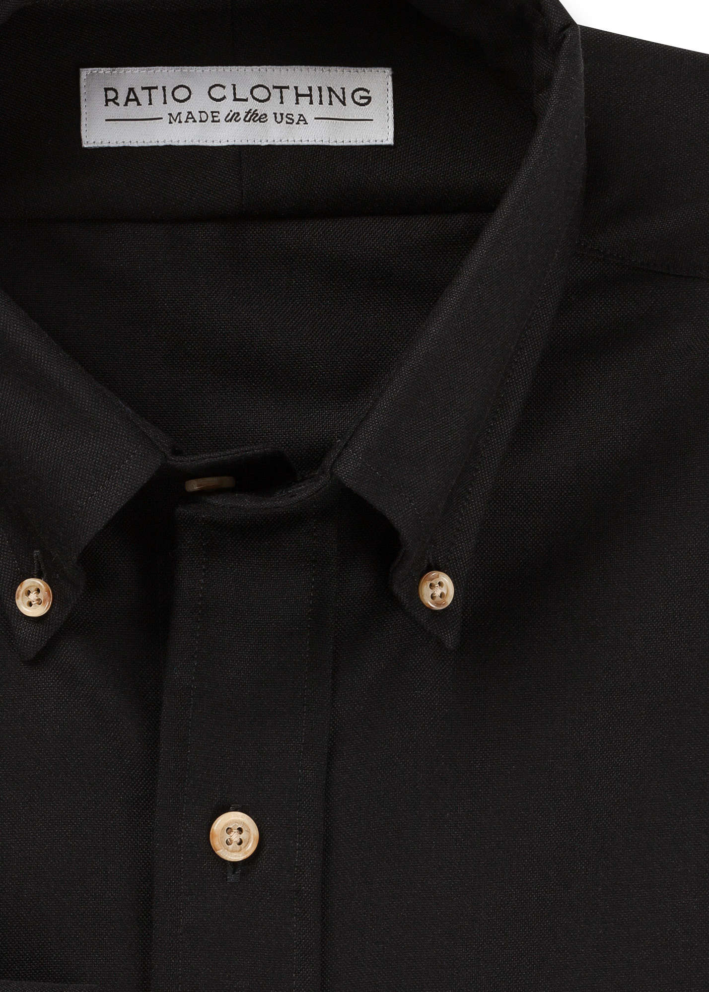 We like to offset the solid black here with our brown horn buttons (shown), but our black buttons make an excellent choice if you're going for the full monochromatic look.