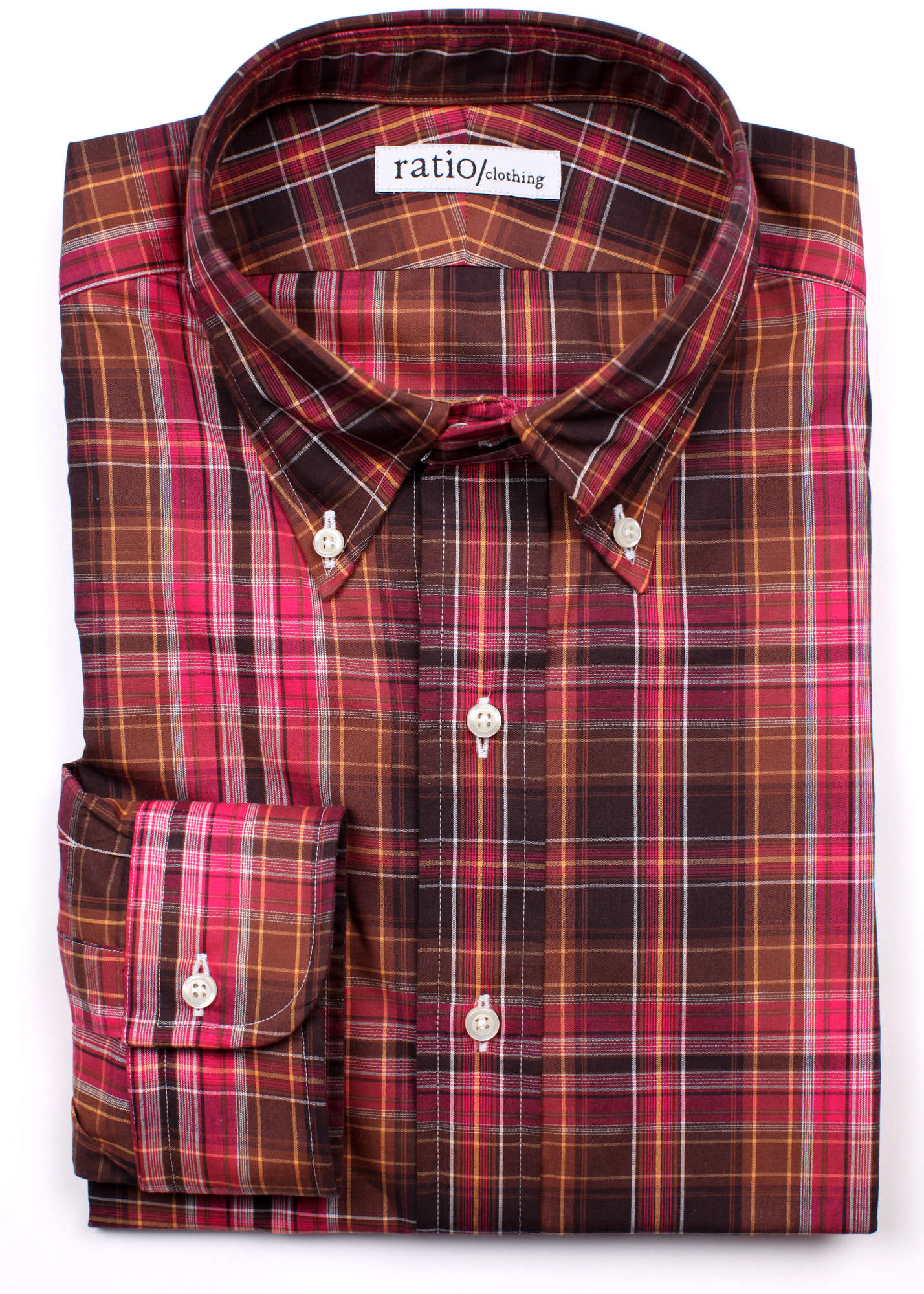 Like all shirts from Ratio Clothing, this shirt is made-to-order in the USA to your exact size and style specifications with single needle stitching, two-piece yoke, and quarter-inch top-stitching on the cuff, collar, and placket.